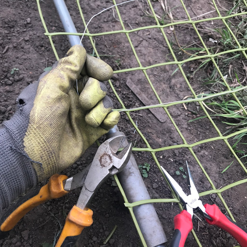 I started by connecting the two panels of mesh together, measuring their width and assembled the frame to fit.